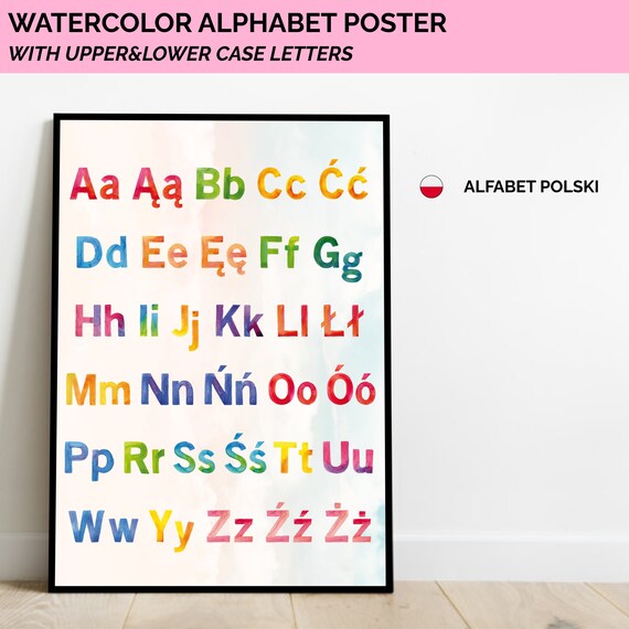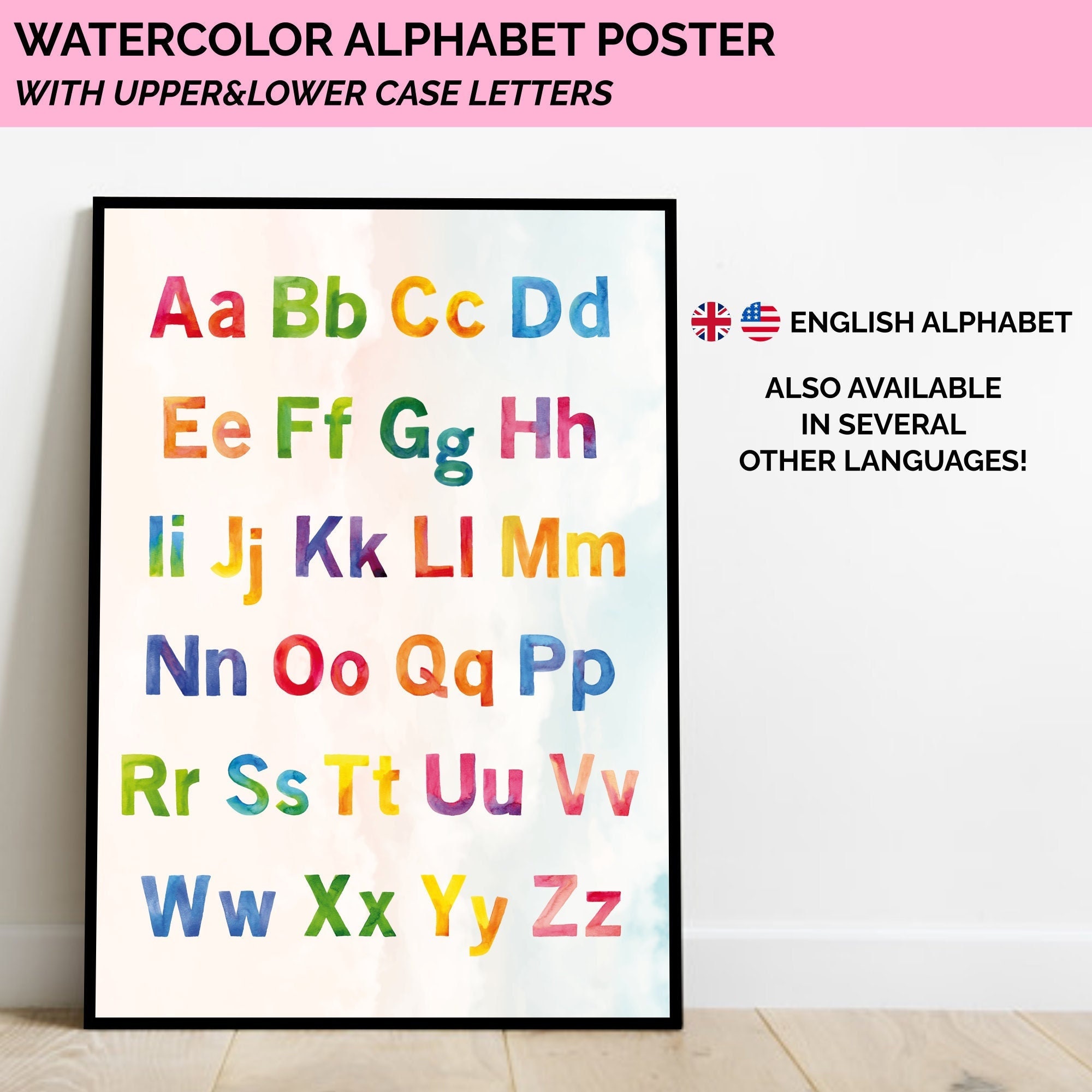 Watercolor Alphabet Poster With Upper Lower Case Letters In Etsy